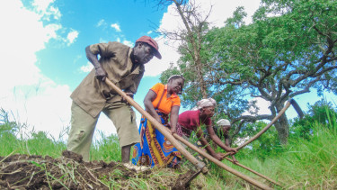 Community members constructing 'swales' (water trapping structures) in Nhamue. Credit: Azada Verde