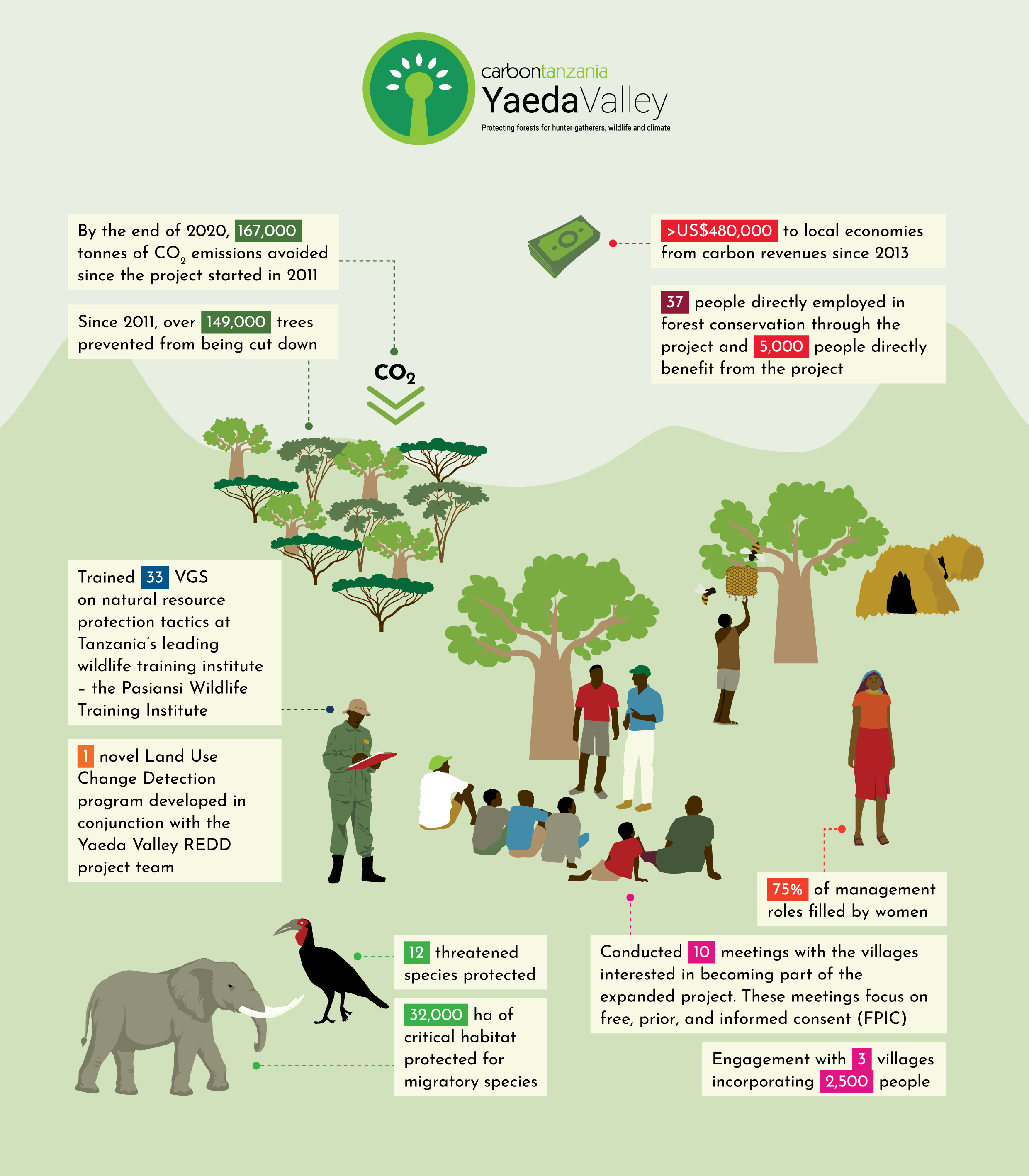 The Yaeda-Eyasi Landscape REDD project strengthens land tenure, management capacity and local natural resource management in Hadza hunter-gatherer and Tatoga pastoralist communities in Northern Tanzania, contributing to local and international conservation aims.